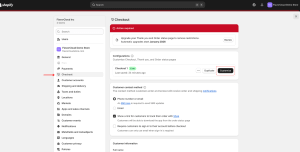 Enable the extension in Shopify Checkout Settings by going to Settings > Checkout and in the Configuration section select Customize.