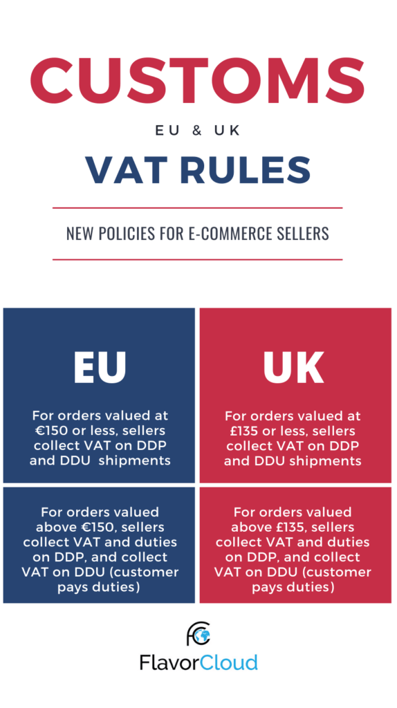 The goal of this model is to streamline the whole process of declaring and paying VAT to the tax authorities. That means merchants who use a platform like FlavorCloud, which is an approved one-stop shop, won’t have to register or file any additional documents with customs and tax authorities. FlavorCloud takes care of that red tape every quarter on your behalf with no additional paper shuffling on your end. It also means you’re in compliance with the requirements of the Super Reduced Dataset – a fancy name for a customs clearance system that’ll get your shipments cleared faster, delivered in less time, and reduce costs and returns.